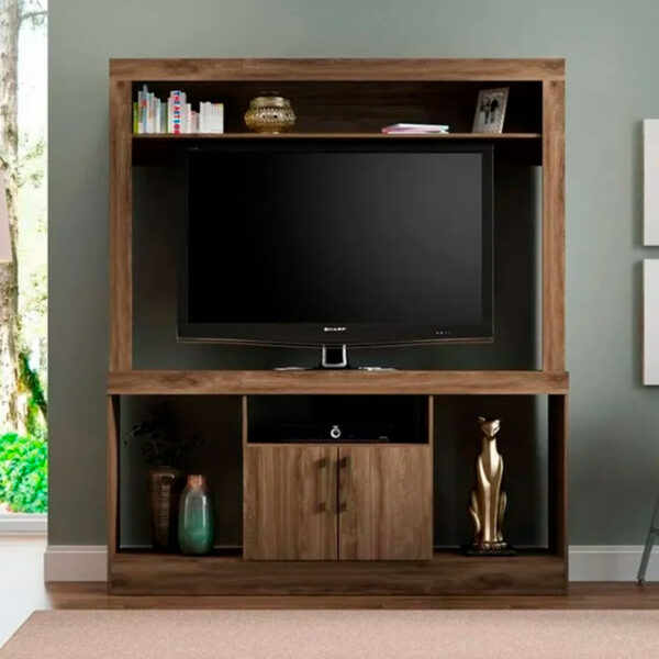 Centro de entretenimiento con varios compartimientos y espacios ideales para el TV.