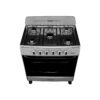 Cocina a gas 5 hornillas con quemadores tipos sabaf para mayor rendimiento y potencia, cuenta con encimera de acero inoxidable, salpicadero, parrillas esmaltadas y perillas ergonómicas, su mango es de metal y la capacidad del horno es de 105L.
