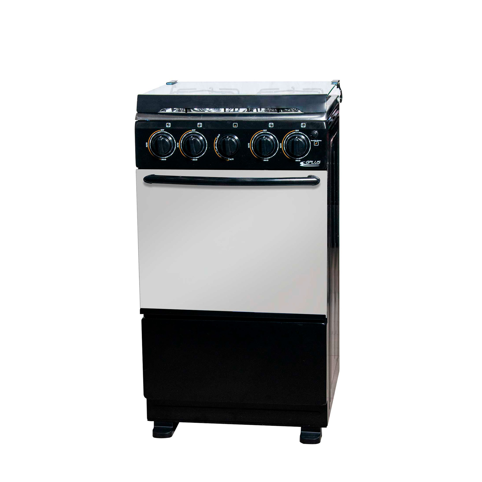 Gplus nos trae esta cocina de 20″ con acabados de calidad, 4 quemadores de bronce y parrilla superior de hierro fundido. <span style=»color: #636363;»>Su horno, con parrillas, ventana para ver el interior te dejará mantener a la vista lo que estés horneando.