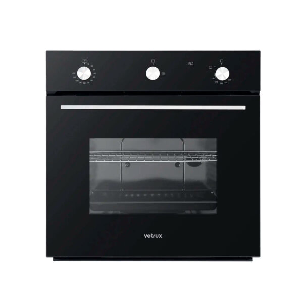 Horno Vetrux, modelo Ignita lite de 72 litros, 60cm. Posee puerta de triple vidrio, perillas metálicas, iluminación interna, válvula de seguridad y mucho más.