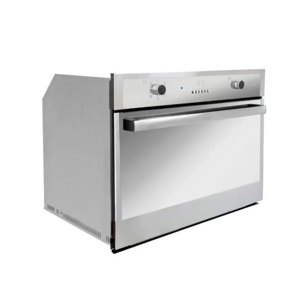 Triple vidrio de seguridad en la puerta para mantener baja temperatura en la zona frontal del horno.