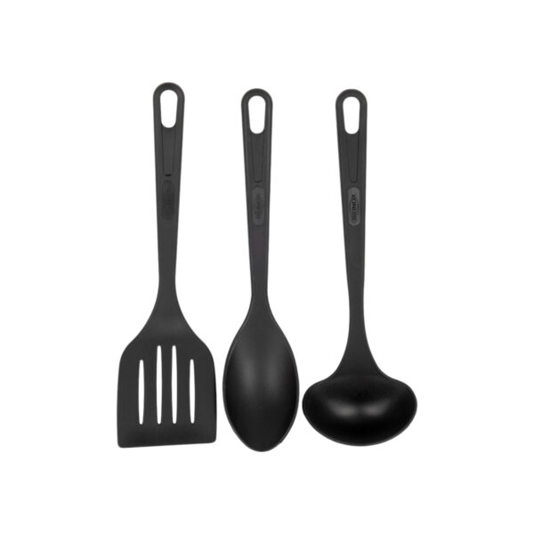 Incluye: 1 sartén, 3 utensilios de cocina, 1 juego de tazas, 3 ollas con tapa de vidrio y una jarra hervidora.